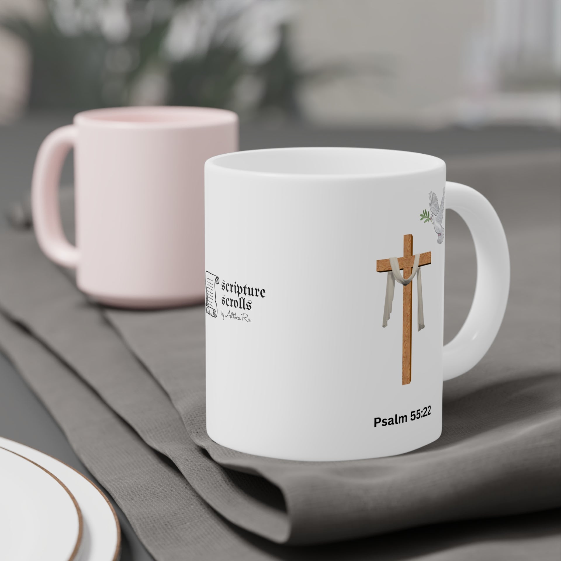 Our Christian mug collection offers uplifting messages to start your day on a positive note. Adorned with Bible verses, these coffee or tea mugs make delightful gifts for parents, educators, colleagues, or cherished individuals. Crafted by the team at Scripture Scrolls by Althea Ra, our distinctive collection of Religious Christian mugs showcases your beloved Scriptures. With our faith base design our mug collection aims to inspire and uplift.