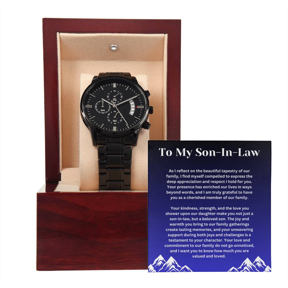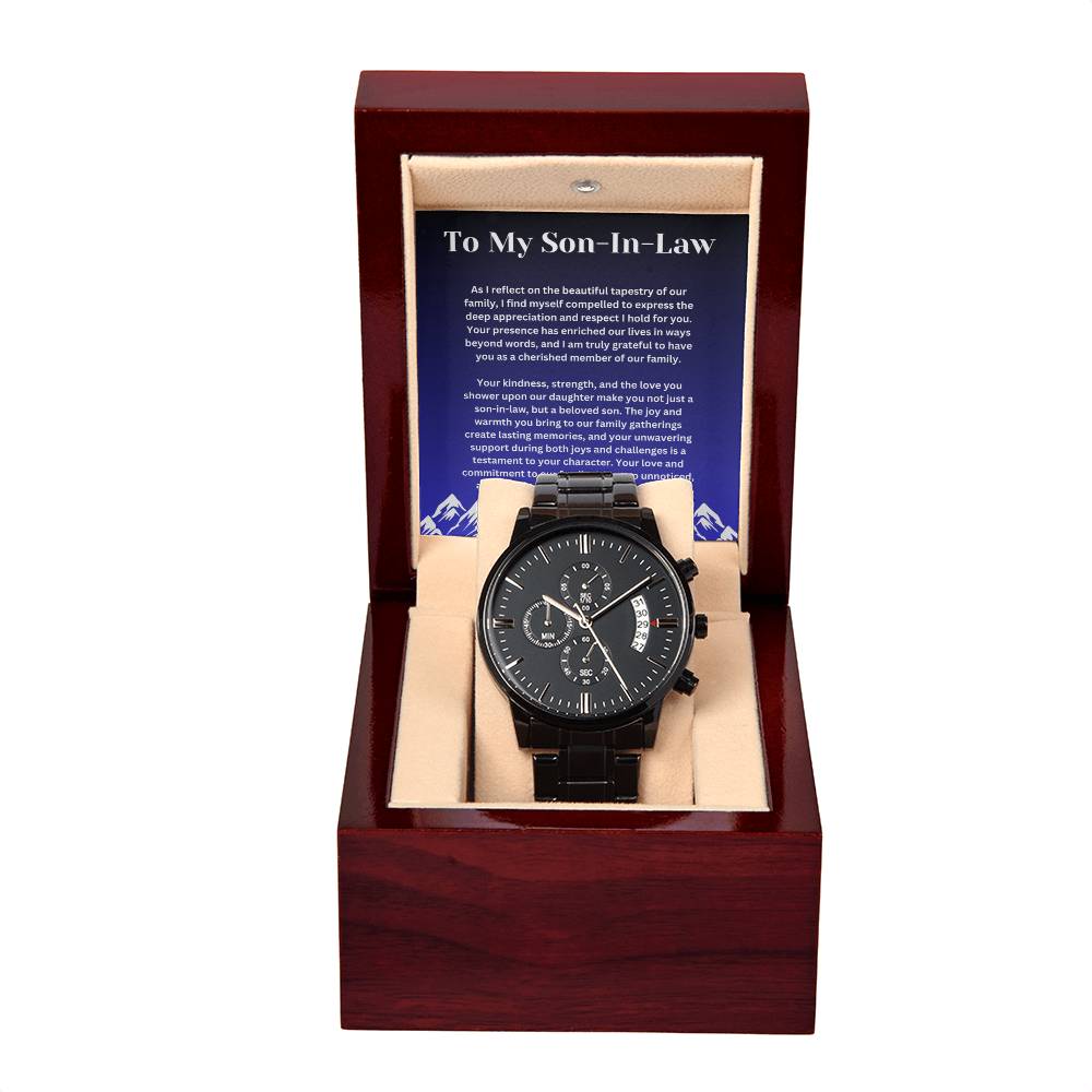 A handsome gift that can withstand constant use, this Black Chronograph Watch is perfect for all the special men in your life. A thoughtful present to your groomsmen, an anniversary memento, or a long-lasting keepsake...