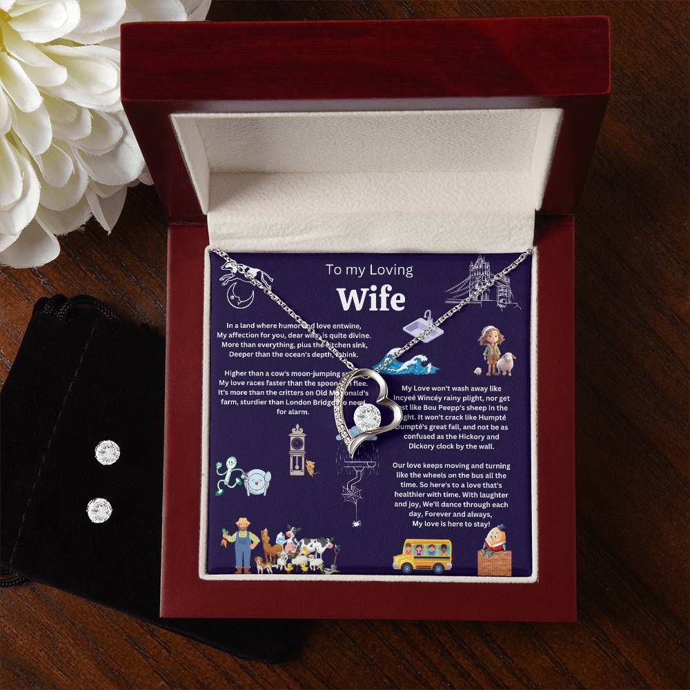 Give your loved one a gift that will make their heart swell! The Forever Love Necklace and Cubic Zirconia Earring Set is sure to do the trick. This necklace and earring pairing provides dazzling sparkle when worn together or separately, and is perfect for any occasion! Do not miss out on this special offering!