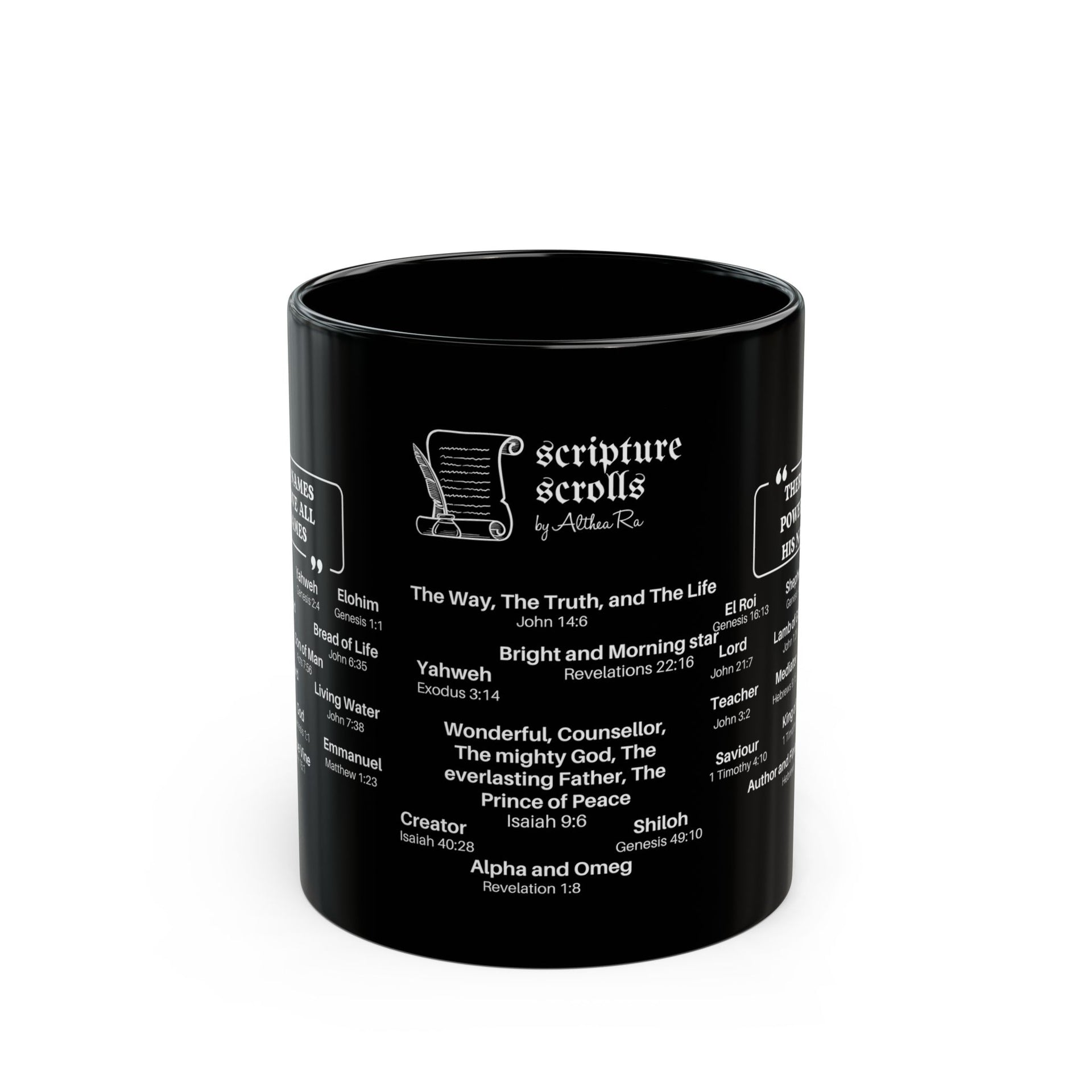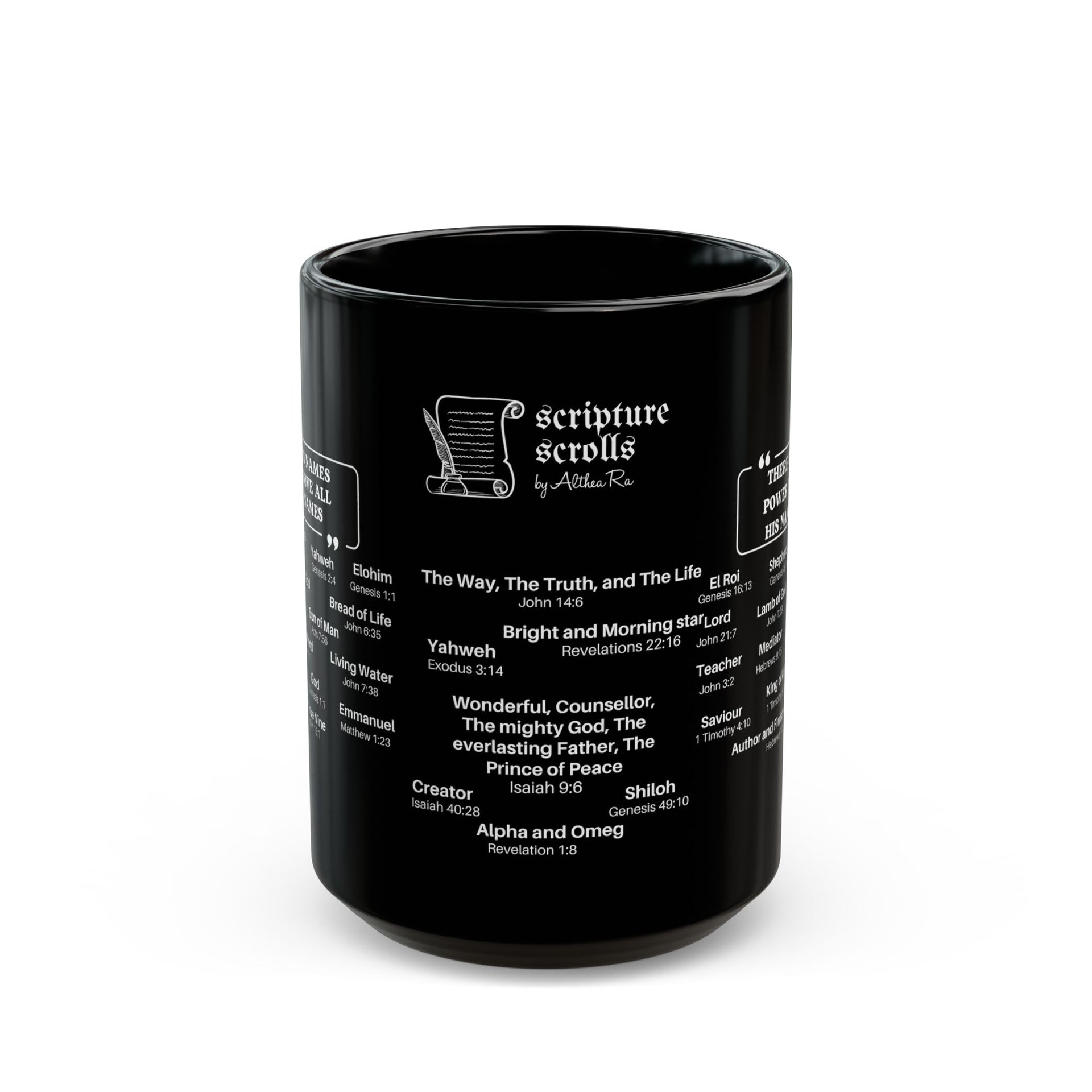Our Christian mug collection offers uplifting messages to start your day on a positive note. Adorned with Bible verses, these coffee or tea mugs make delightful gifts for parents, educators, colleagues, or cherished individuals. Crafted by the team at Scripture Scrolls by Althea Ra, our distinctive collection of Religious Christian mugs showcases your beloved Scriptures. With our Faith base designs, our mug collection aims to inspire and uplift.